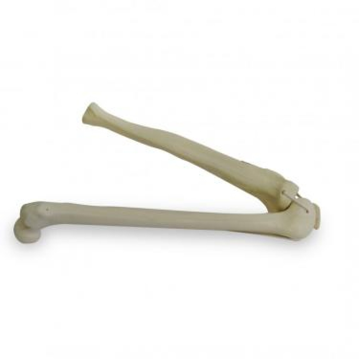 Com fêmur esquerdo, tíbia esquerda e patela, o conjunto apresenta camada cortical, osso esponjoso e canal medular, além de estar unido por simulação dos ligamentos colaterais (medial e lateral) e cruzados (anterior e posterior). Isso permite executar cortes, perfurações e fixações com instrumentais cirúrgicos reais, replicando a resistência.